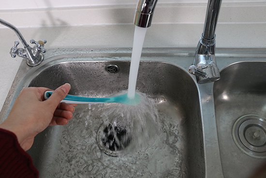 基本上打開水龍頭一兩秒后就能感受到熱水了。把感溫勺放到水龍頭下沖洗幾秒鐘,拿開之后,可以發(fā)現(xiàn)感溫勺的顏色變淺了。